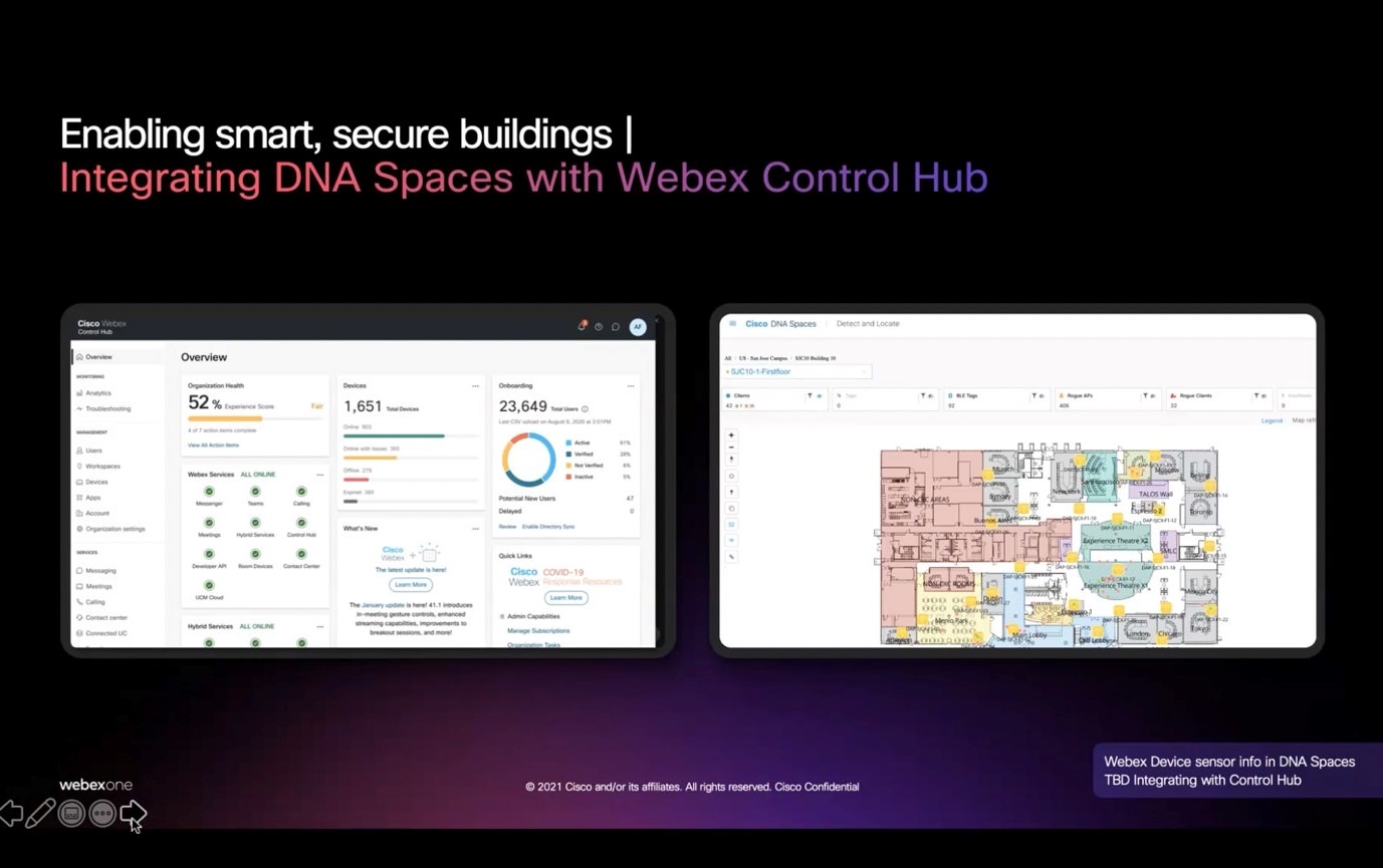 ซิสโก้ได้เปิดตัวนวัตกรรม Webex กว่า 1,000 รายการในช่วง 12 เดือนที่ผ่านมา และข่าวประชาสัมพันธ์ในวันนี้ครอบคลุมการพัฒนาด้านต่างๆ สำหรับบุคลากรที่ทำงานแบบไฮบริด รวมถึงสถานที่ทำงาน กิจกรรม และทีมงานฝ่ายไอที