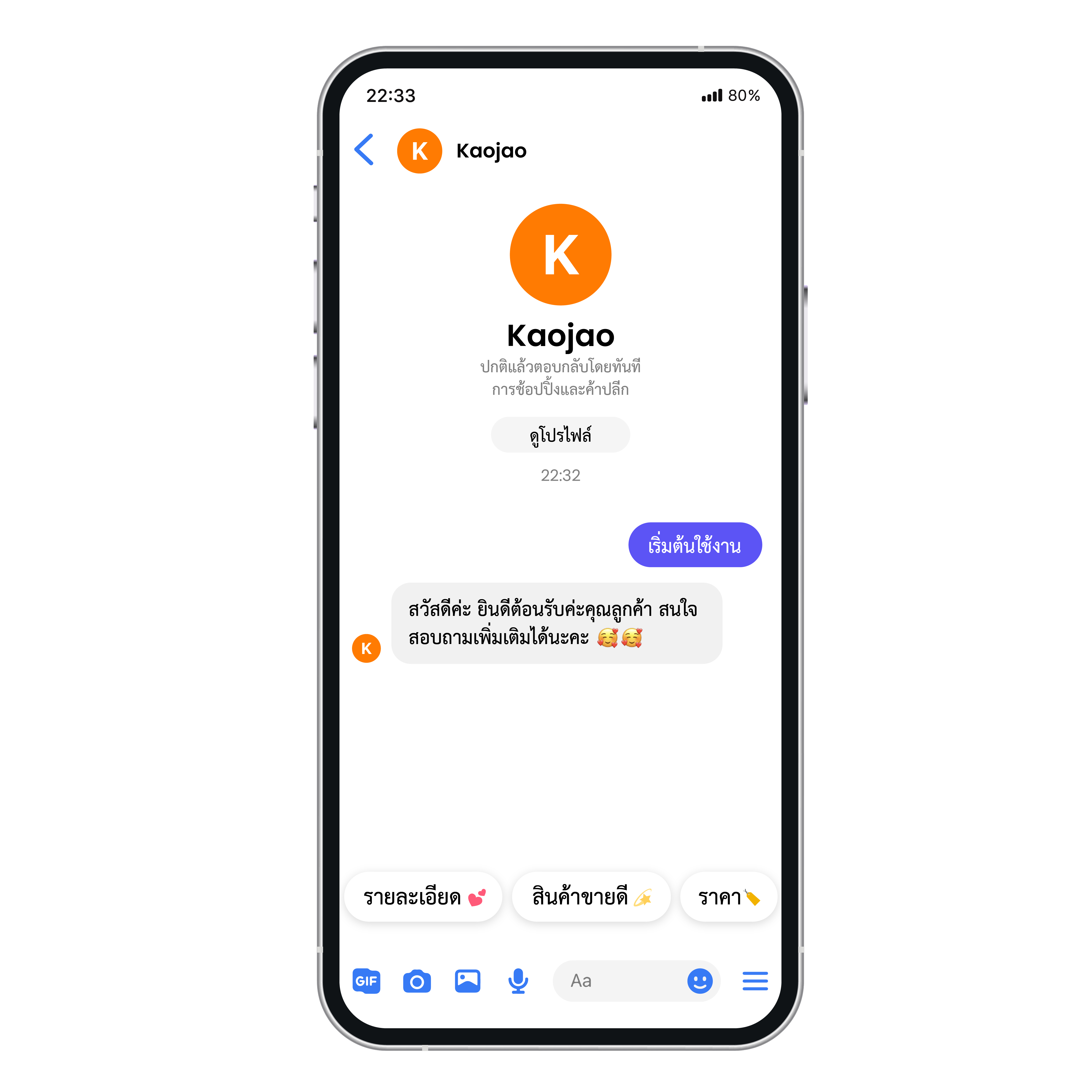 KaoJao ยังได้ร่วมบอกเล่าถึงวิธีที่พวกเขาสามารถช่วยให้ธุรกิจต่างๆ เติบโต และรับมือกับคำสั่งซื้อจำนวนมากผ่าน Facebook ได้อย่างมีประสิทธิภาพ รวมถึงเน้นย้ำถึงความสำคัญที่ภาคธุรกิจจะต้องใช้เทคโนโลยีและโซลูชันล่าสุดในการเพิ่มประสิทธิภาพ และทำให้ประสบการณ์การช้อปปิ้งของลูกค้าเป็นเรื่องสนุก และไร้รอยต่อ