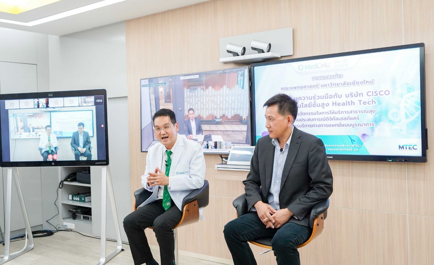 เชียงใหม่, ประเทศไทย, 9 กันยายน 2563 – คณะแพทยศาสตร์ มหาวิทยาลัยเชียงใหม่ สถาบันการแพทย์ชั้นนำระดับมาตรฐานสากล และบริษัท ซิสโก้ ซีสเต็มส์ ผู้นำทางด้านเทคโนโลยีอินเทอร์เน็ตระดับโลก ลงนามบันทึกข้อตกลงความร่วมมือทางวิชาการ (MOU) ภายใต้ “โครงการร่วมพัฒนานวัตกรรมด้านสาธารณสุขและเทคโนโลยีทางการแพทย์ (Med Tech Co-innovation)” เพื่อแลกเปลี่ยนองค์ความรู้ใหม่ทางวิชาการ และสนับสนุนเทคโนโลยีเพื่อการพัฒนาสาธารณสุขอย่างยั่งยืน สู่ความเป็นเลิศด้านการบริการทางการแพทย์ พร้อมยกระดับประสบการณ์ดิจิทัลเฮลท์แคร์ (Digital Healthcare Experience) โดยความร่วมมือระหว่างคณะแพทยศาสตร์ มหาวิทยาลัยเชียงใหม่และบริษัท ซิสโก้ ซีสเต็มส์ครั้งนี้มีจุดมุ่งหมายสำคัญดังนี้