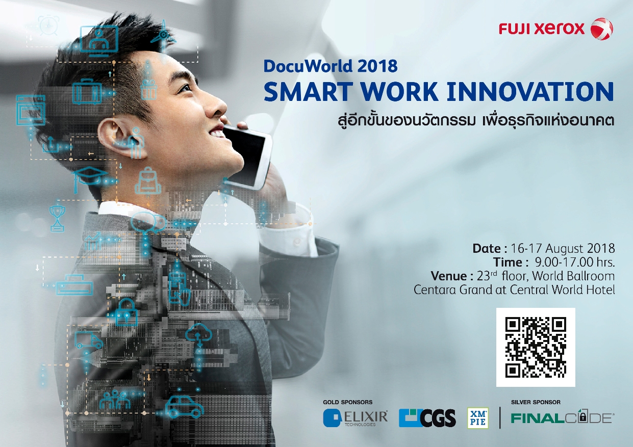 อีกหนึ่งสัมมนาฟรีด้านไอทีที่น่าสนใจจาก Fuji Xerox ที่กำลังจะมีขึ้นในช่วงกลางเดือนนี้กับ “DocuWorld 2018” ที่จะจัดขึ้นโดยชูแนวคิด “Smart Work Innovation สู่อีกขั้นของนวัตกรรม เพื่อธุรกิจแห่งอนาคต” โดยภายในงานนั้นจะมีการสัมมนาในหัวข้อต่าง ๆ ที่น่าสนใจจาก Speaker รับเชิญจากหลากหลายสาขา และมีการจัดโซนที่นำเสนอด้าน Solution และ Technology ที่น่าสนใจอีกทั้งหมด 9 โซน โดยแต่ละโซนนั้นจะนำเสนอข้อมูลในเชิงลึกที่ผู้เข้าชมจะได้ข้อมูลที่สามารถนำไปปรับใช้ได้จริง อาทิเช่น เรื่องของปัญญาประดิษฐ์หรือ AI ในงานเอกสาร (Document AI, IoT / IoH เป็นต้น) โดยงานนี้จะมีขึ้นระหว่างวันที่ 16-17 สิงหาคม 2561 เวลา 09.00 – 17.00 น. ณ ชั้น 23 ห้องเวิลด์บอลรูม โรงแรมเซ็นทาราแกรนด์แอทเซ็นทรัลเวิลด์