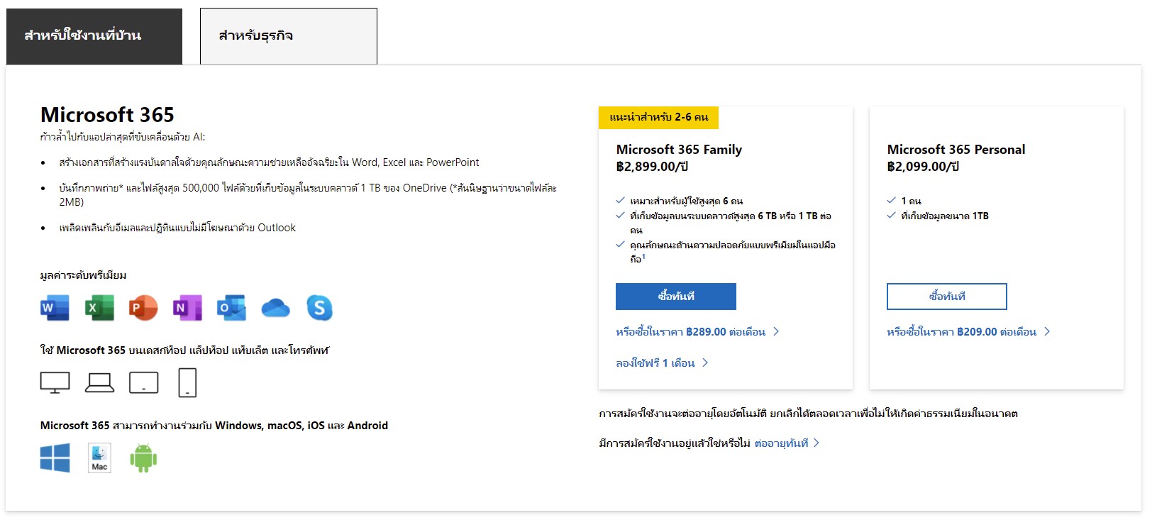 - Microsoft 365 Family ราคา 2,899 บาท/ปี