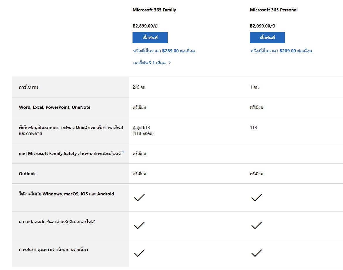 - Microsoft 365 Personal ราคา 2,099 บาท/ปี